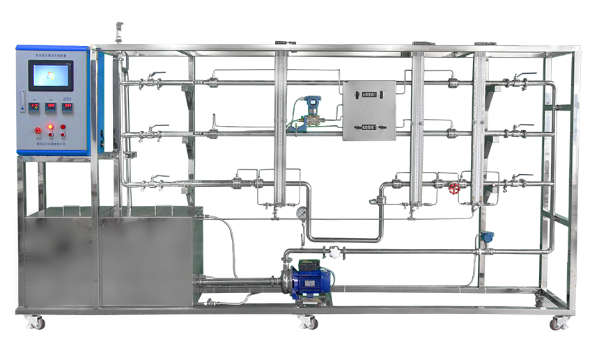水箱、泵、不同管徑、材質(zhì)的的管子,各種閥門(mén)和管件、渦輪流量計、溫度傳感器、智能儀表、嵌入式一體化彩色觸控顯示屏。