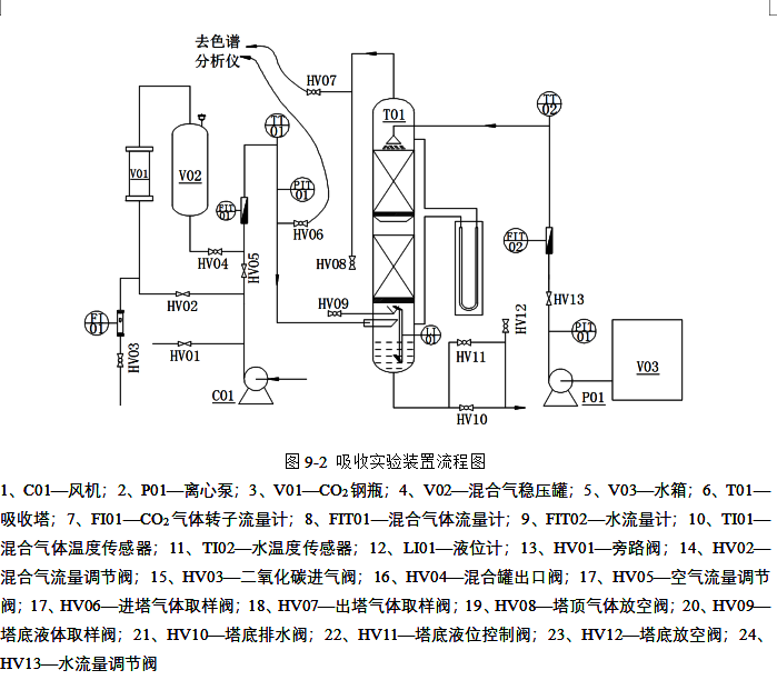 吸收塔、儲存水箱、二氧化碳空氣混合罐、風(fēng)機、水泵、流量計、電遠傳壓力表、電遠傳真空表、液位控制、溫度傳感器壓差變送器、智能儀表、嵌入式一體化彩色觸控顯示屏。