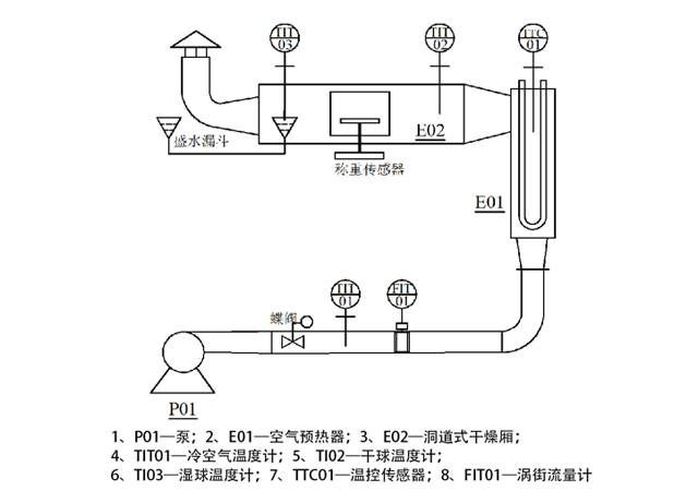 鼓風(fēng)機、渦街流量計、蝶閥、溫度傳感器、加熱器、洞道干燥器、重量傳感器、智能儀表、嵌入式一體化彩色觸控顯示屏。