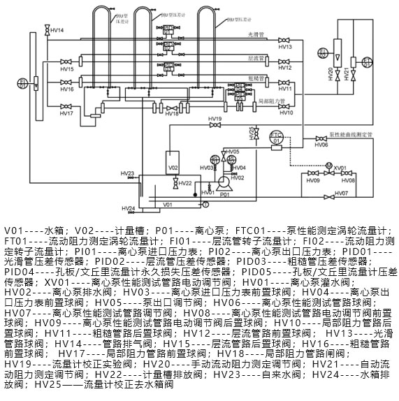 水箱、離心泵、壓力表、渦輪流量計、光滑管、粗糙管、局部阻力管、壓差傳感器、孔板流量計(文丘里流量計)、轉子流量計、 倒U型壓差計、計量槽、電動(dòng)調節閥、溫度傳感器、智能儀表、空氣開(kāi)關(guān)等電氣、嵌入式一體化彩色觸控顯示屏。
